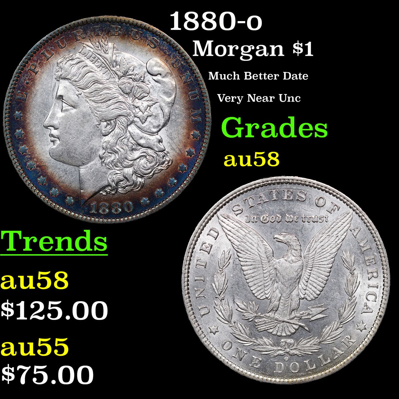 1880-o Morgan Dollar $1 Grades Choice AU/BU Slider.