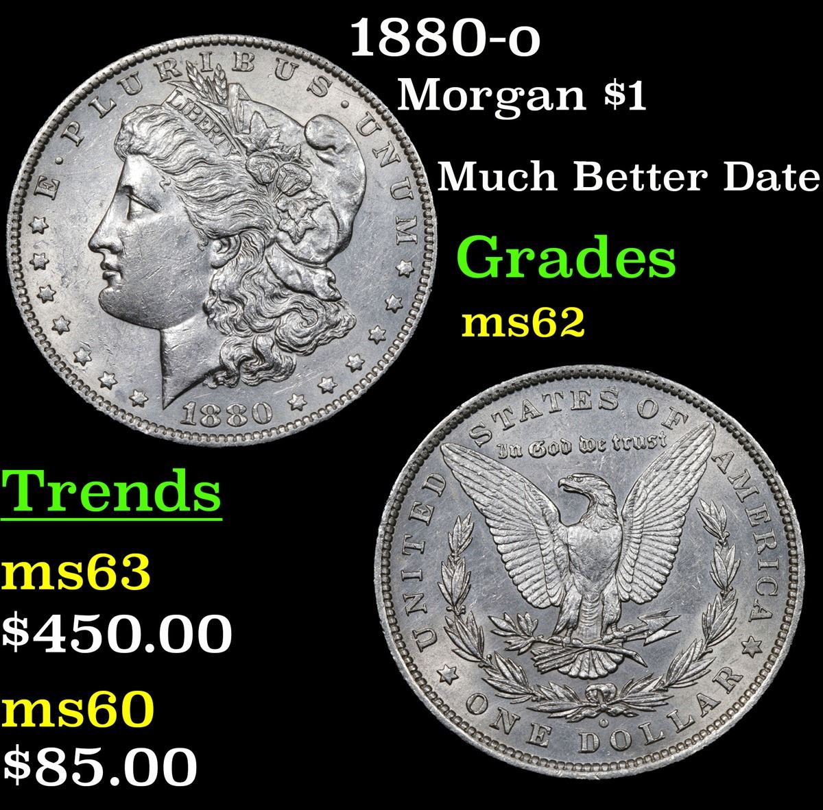 1880-o Much Better Date . Morgan Dollar $1 Grades Select Unc.