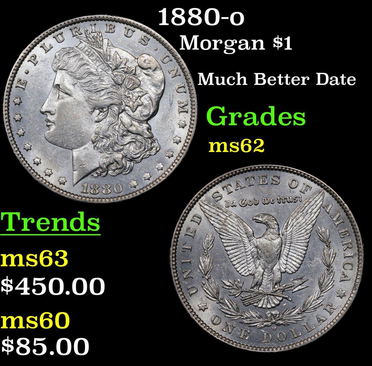 1880-o Much Better Date . Morgan Dollar $1 Grades Select Unc.