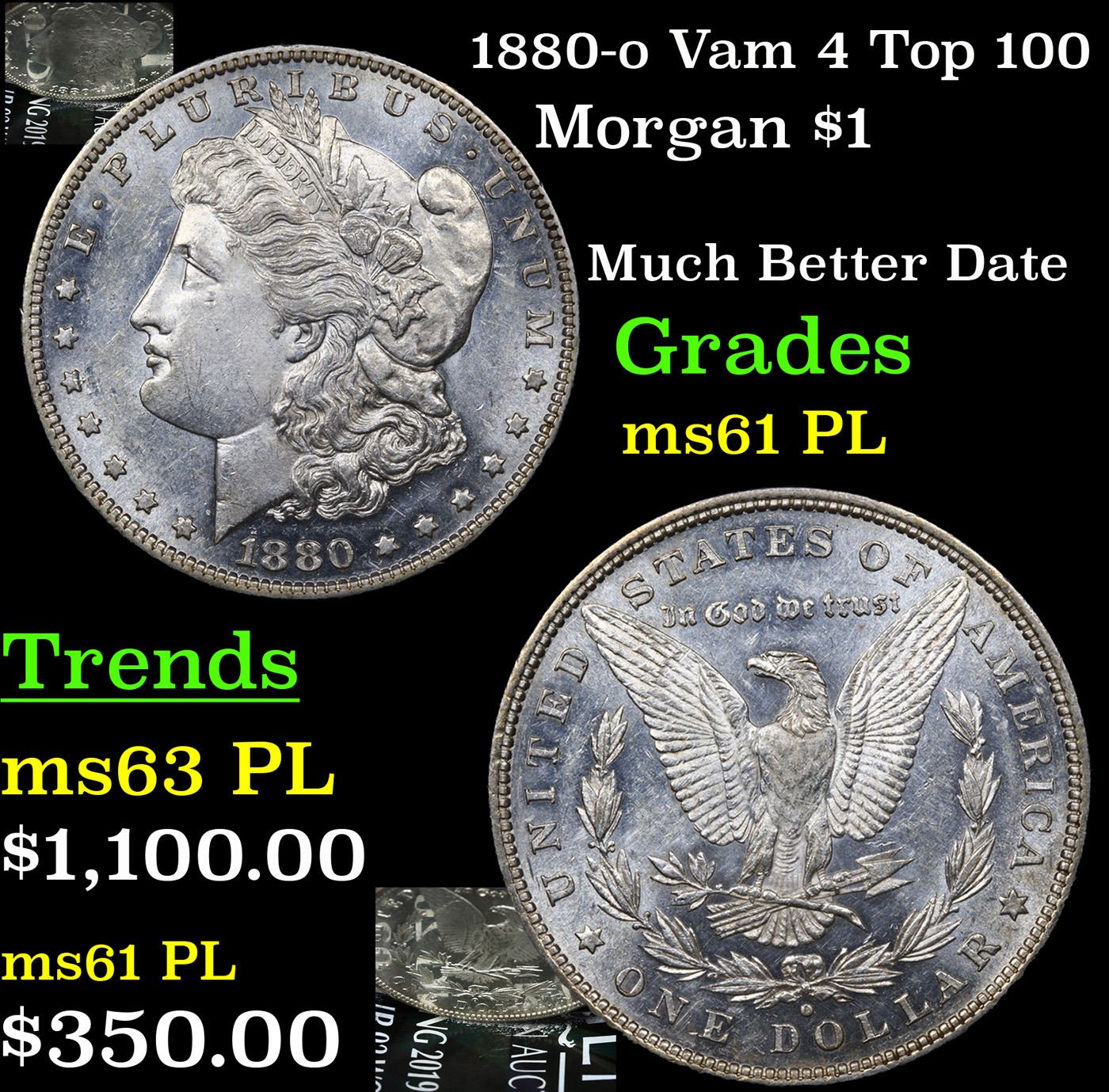 1880-o Vam 4 Top 100 Morgan Dollar $1 Graded Unc+ PL By USCG.