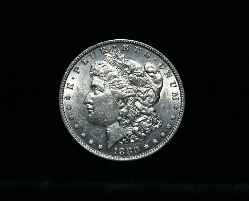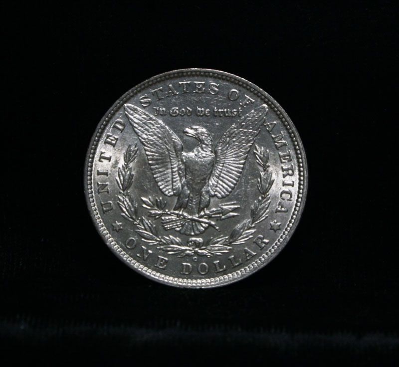 A nice uncirculated example of an 1880-o. All white, nice luster. Multiple clashes on the obverse and reverse and some doubling on the date. I was unable to pinpoint the variety but for my variety collectors you can probably figure it out. NGC's Price Guide lists ms61 at $86 The Wholesale Greysheet lists ms60 at $55 and ms63 at $360. Estimated Value $75