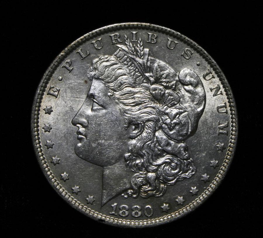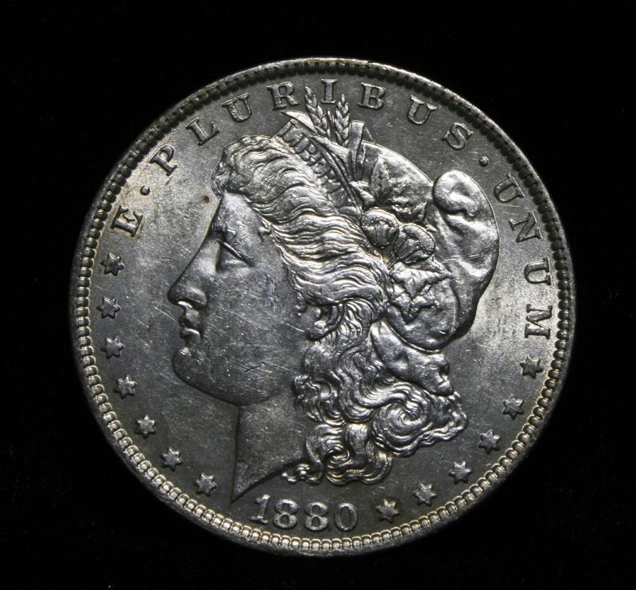 A nice uncirculated example of an 1880-o. Nice strike good luster. Coin World's Coin Values lists ms62 at $150 The Wholesale Greysheet lists ms60 at $55 and ms63 at $295. Estimated Value $150