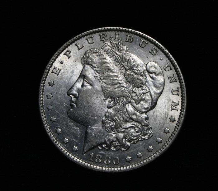 A nice uncirculated example of an 1880-o. Nice strike good luster. Coin World's Coin Values lists ms62 at $150 The Wholesale Greysheet lists ms60 at $55 and ms63 at $295. Estimated Value $150