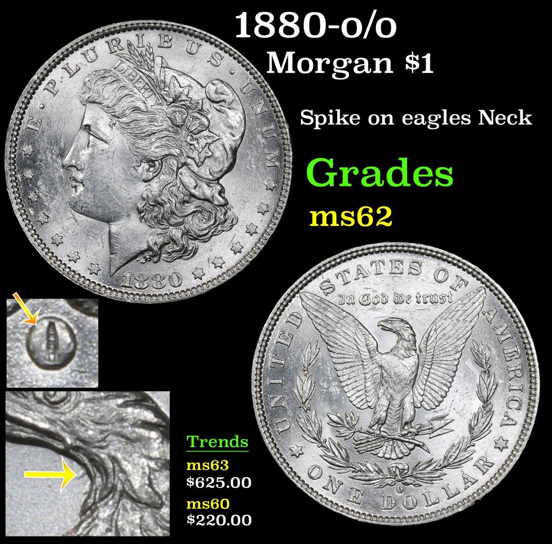 1880-o/o . Spike on eagles Neck Morgan Dollar $1 Grades Select Unc. A Corey's Pick, Bid to Win Coin