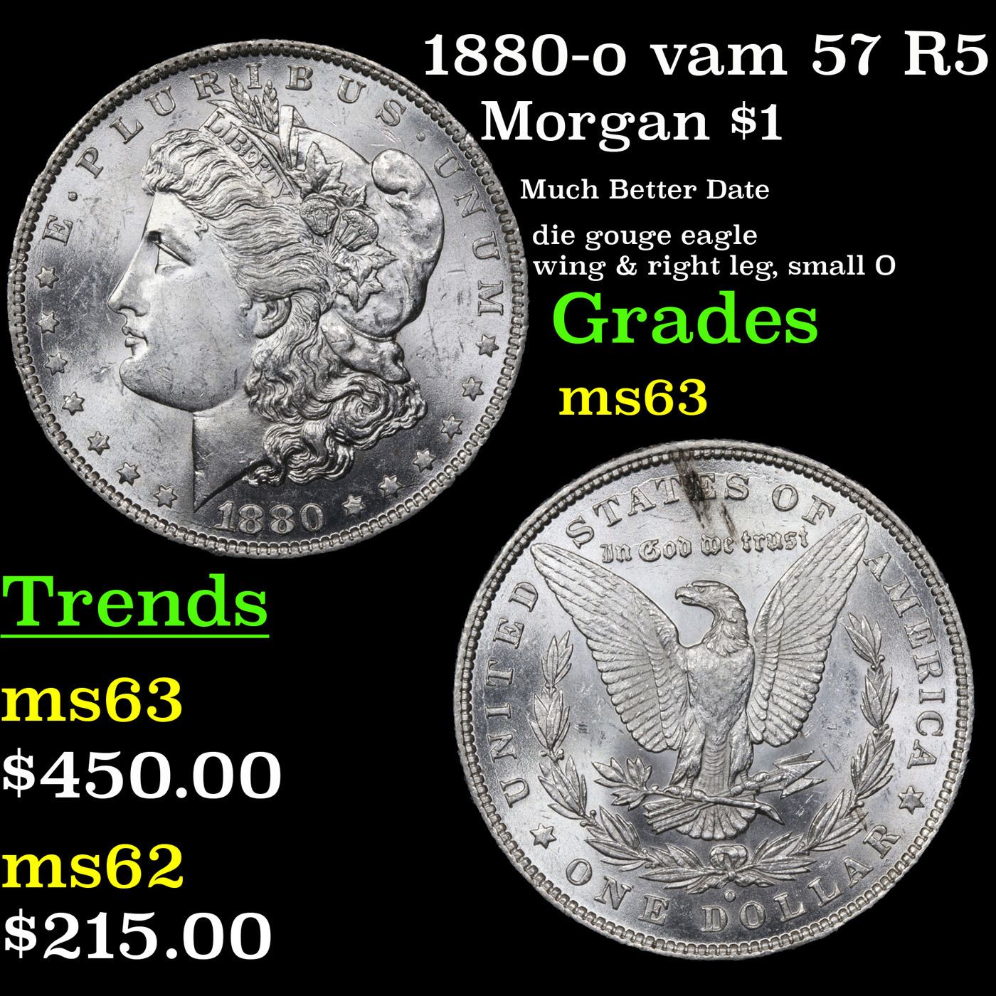 1880-o vam 57 R5 Morgan Dollar $1 Grades Select Unc.