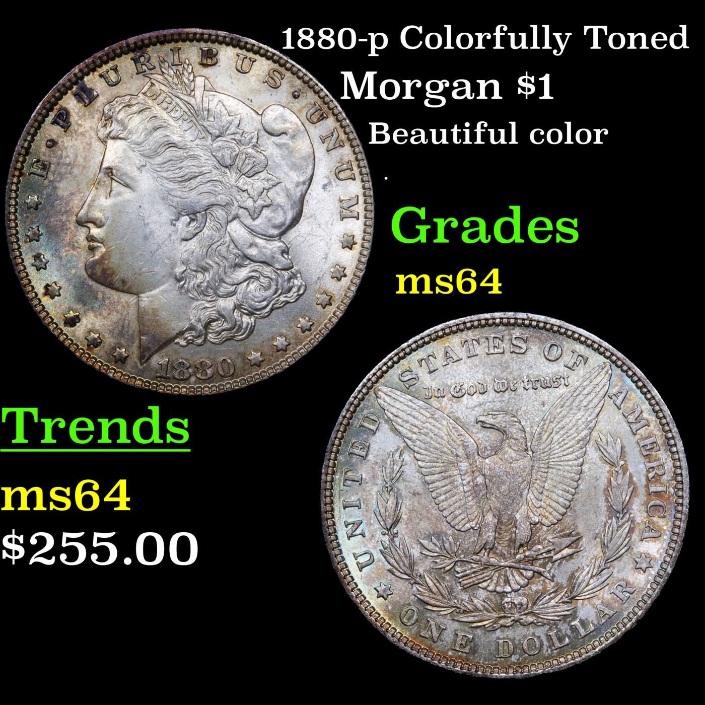 1880-p Colorfully Toned Morgan Dollar $1 Grades Choice Unc.