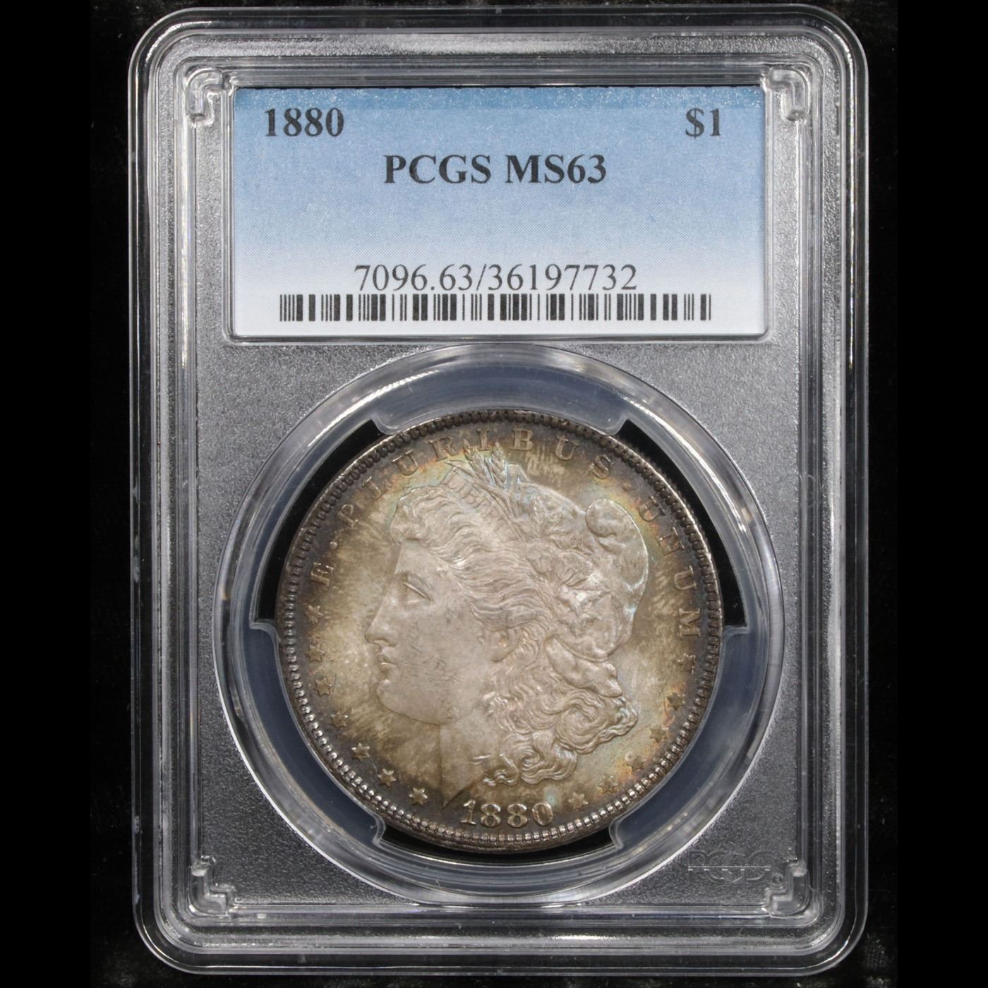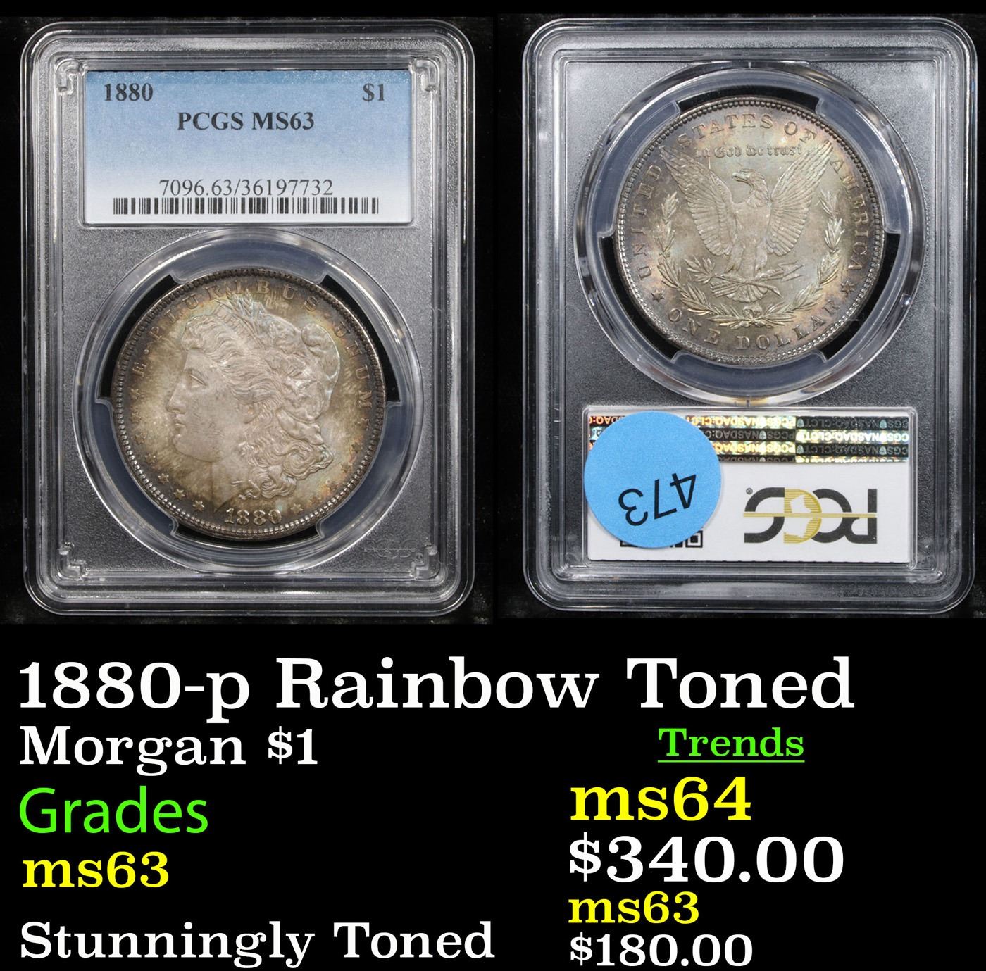 1880-p Rainbow Toned Morgan Dollar $1 Graded ms63 By PCGS. 0