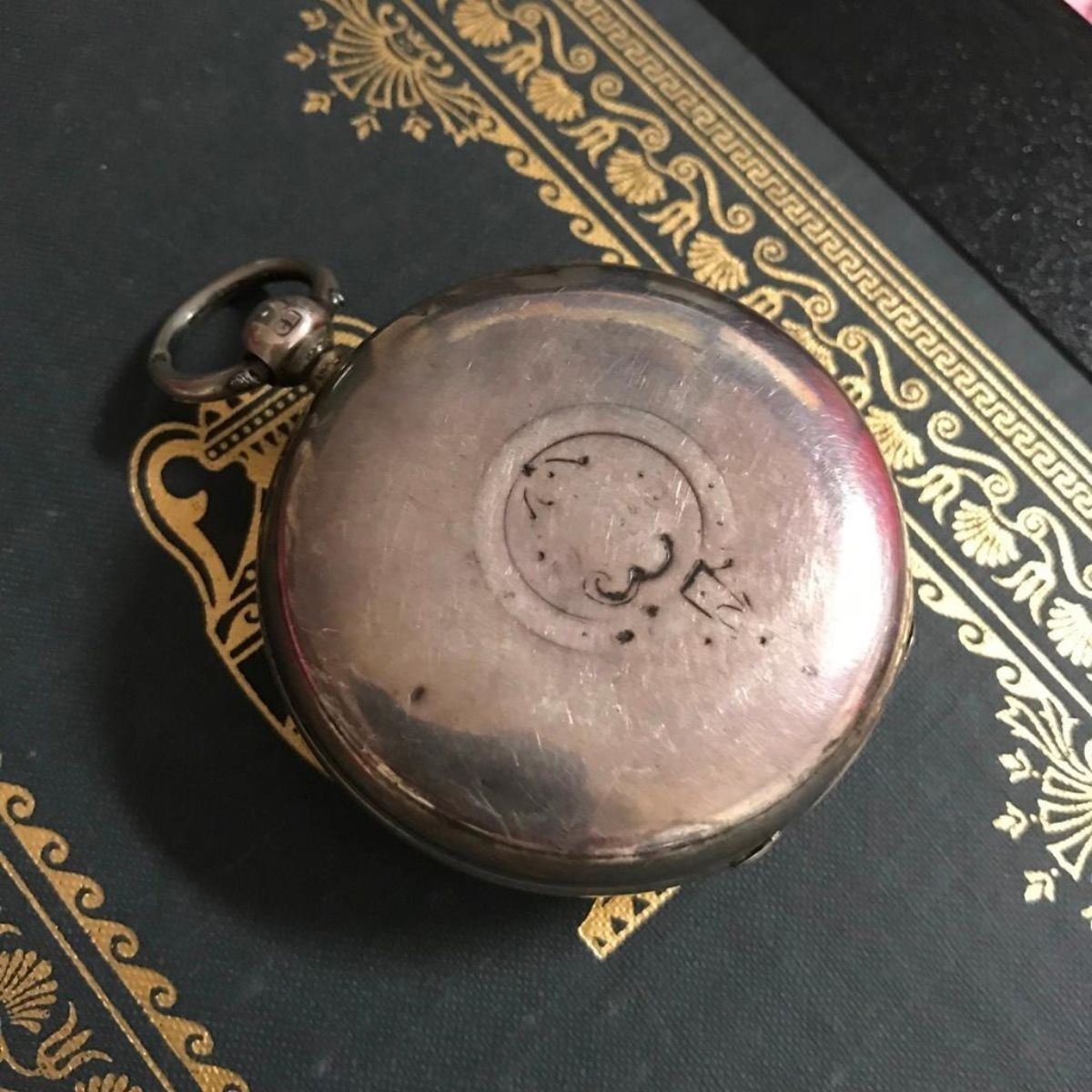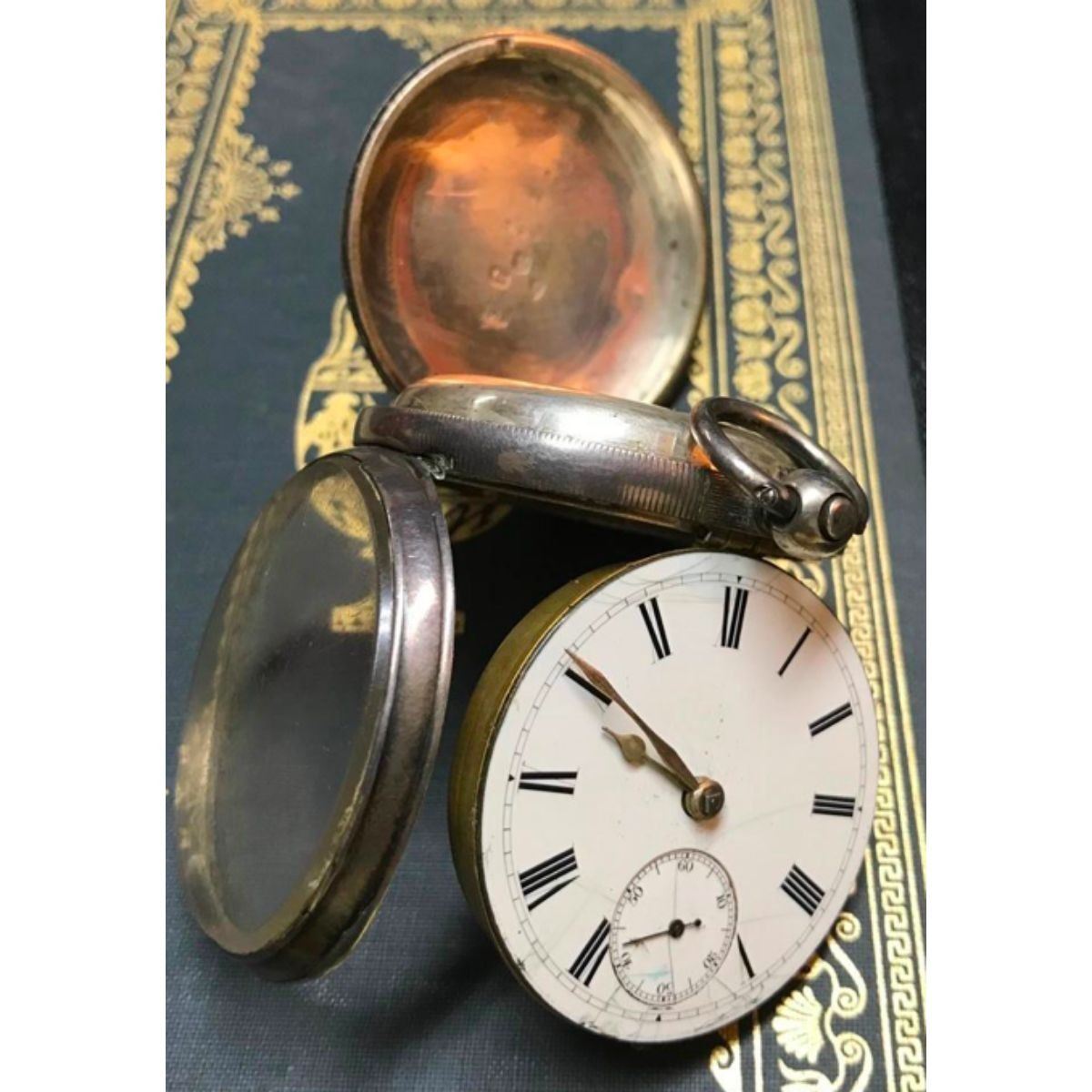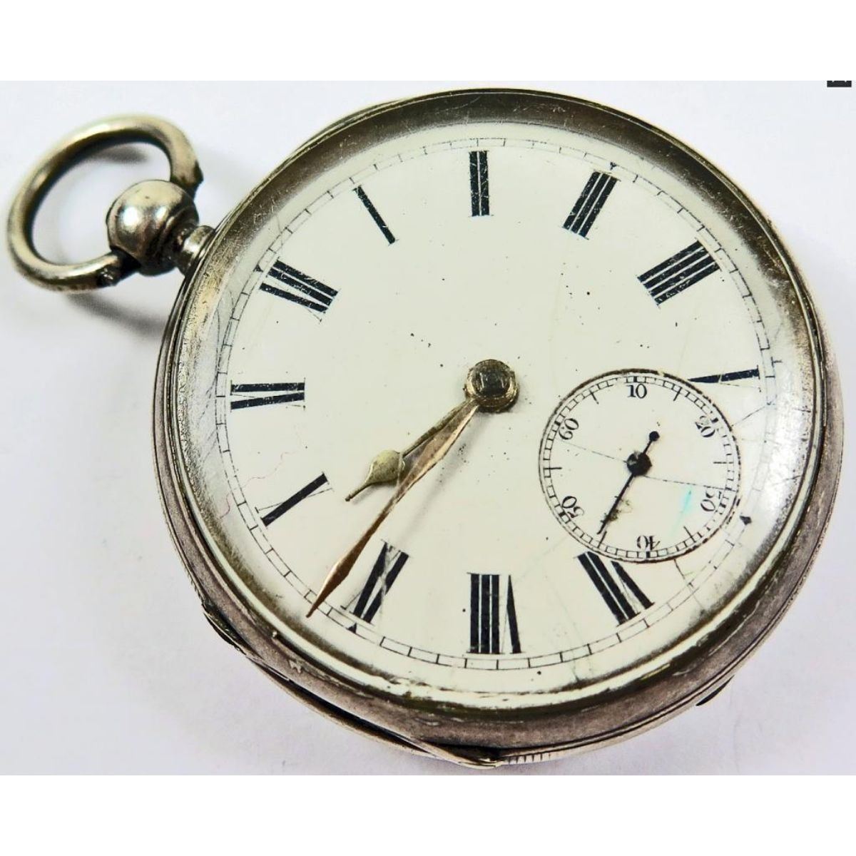 1880's Silver Open Face Pocket Watch, with white enamel dial & black roman numerals, surrounded by a minute track subsidiary dial. 48mm wide. The silver case has marks for Chester. Not working, for ornamentation only, needing repair. 48mm wide.