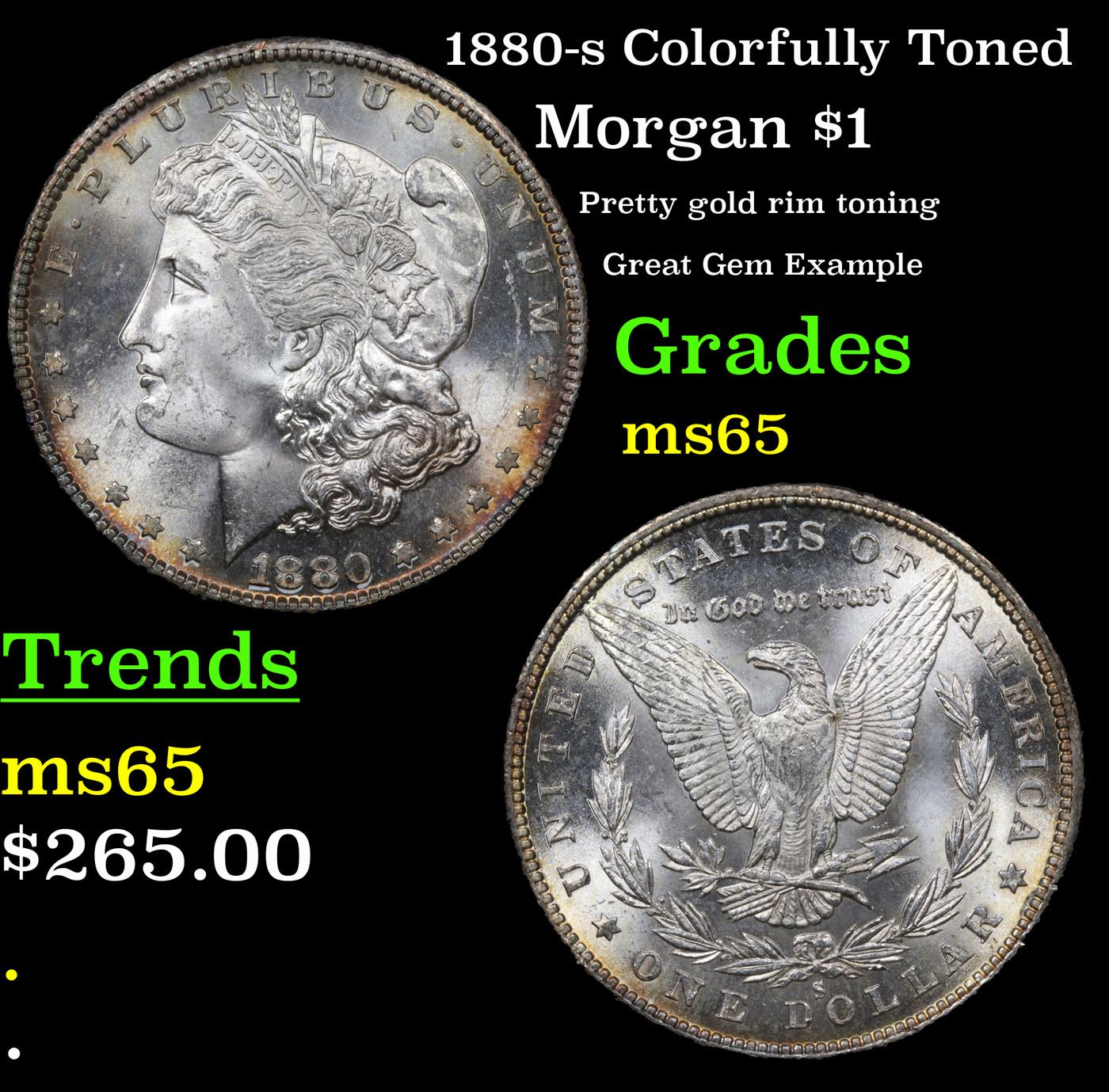 1880-s Colorfully Toned Morgan Dollar $1 Grades GEM Unc.