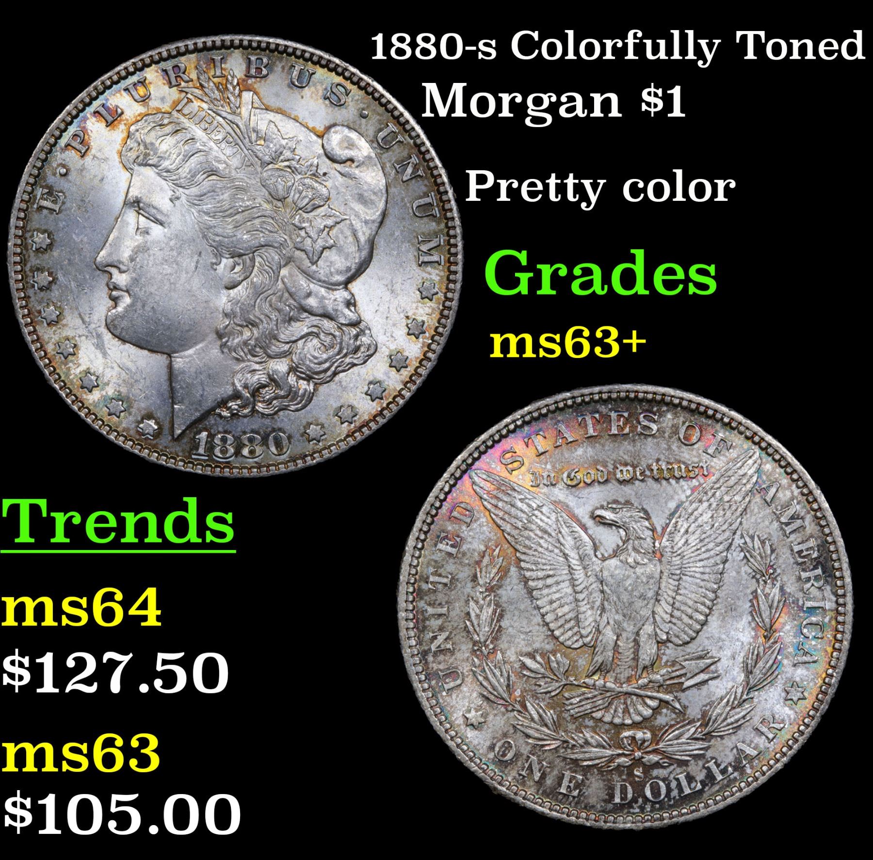 1880-s Colorfully Toned Morgan Dollar $1 Grades Select+ Unc.