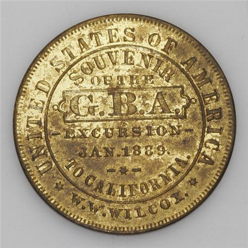 <B>Miscellaneous Group of Merchant Tokens.</B></I> The lot includes: <B>a Joseph Bros. brass token from San Francisco, California,</B></I> Calif-6 in the Rulau catalog, AU; <B>a GA Excursion to California in 1889,</B></I> issued as a souvenir; and a <B>Moise Klinker telephone token,</B></I> issued in San Francisco. Viewing is recommended.