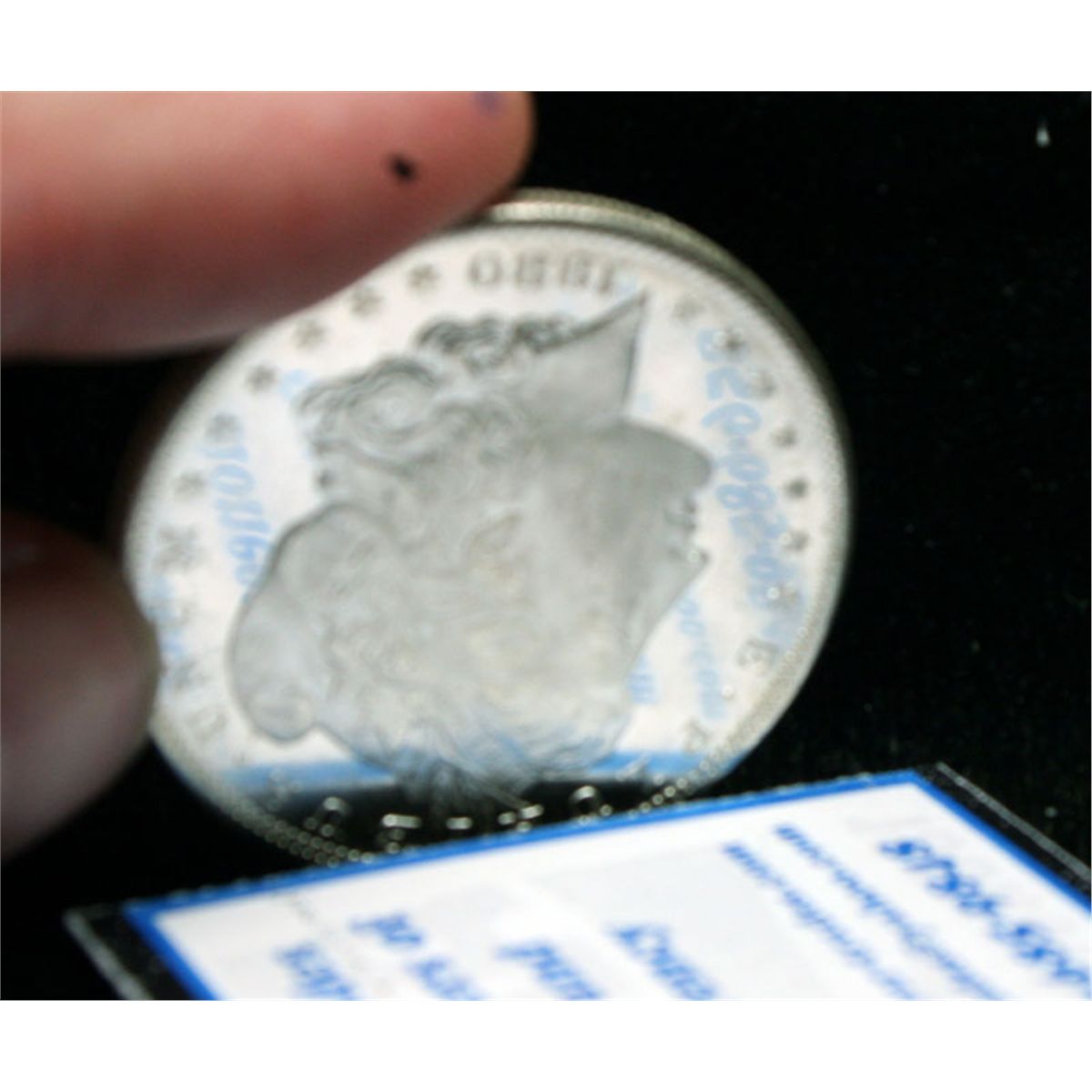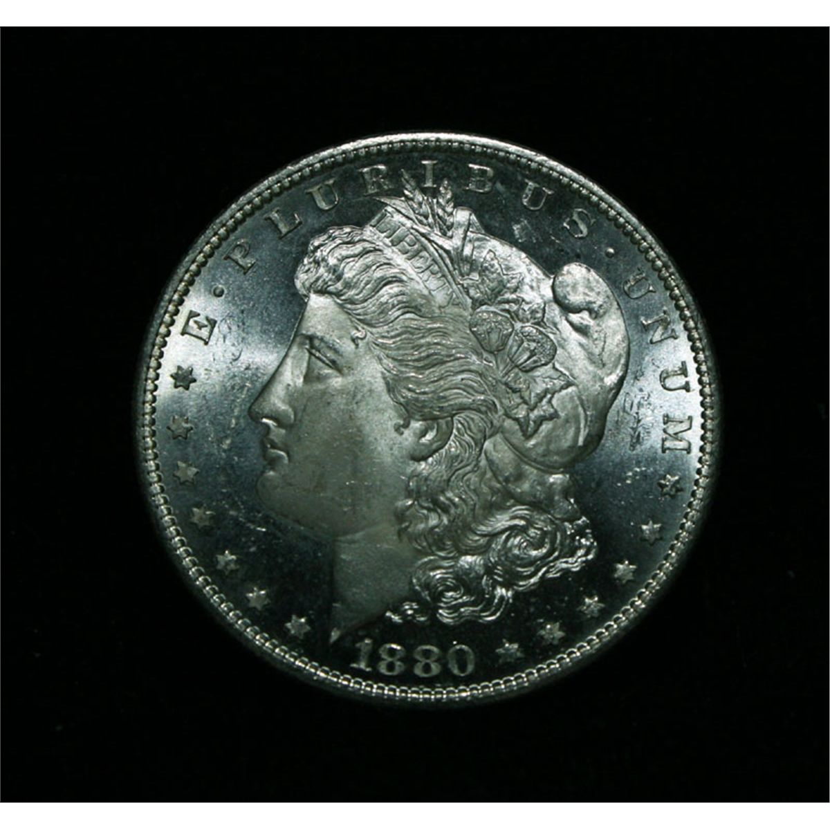 Heavily Frosted Devices and Deep Mirrors highlight this example. A very pretty Morgan. I think its Gem, but I'm going to hedge and say ms64++ NGC's Price Guide lists an ms64 DMPL at $400 and ms65 DMPL at $800. The Wholesale Greysheet lists an ms64 DMPL at $325 and ms65 at $720. Estimated Value $500
