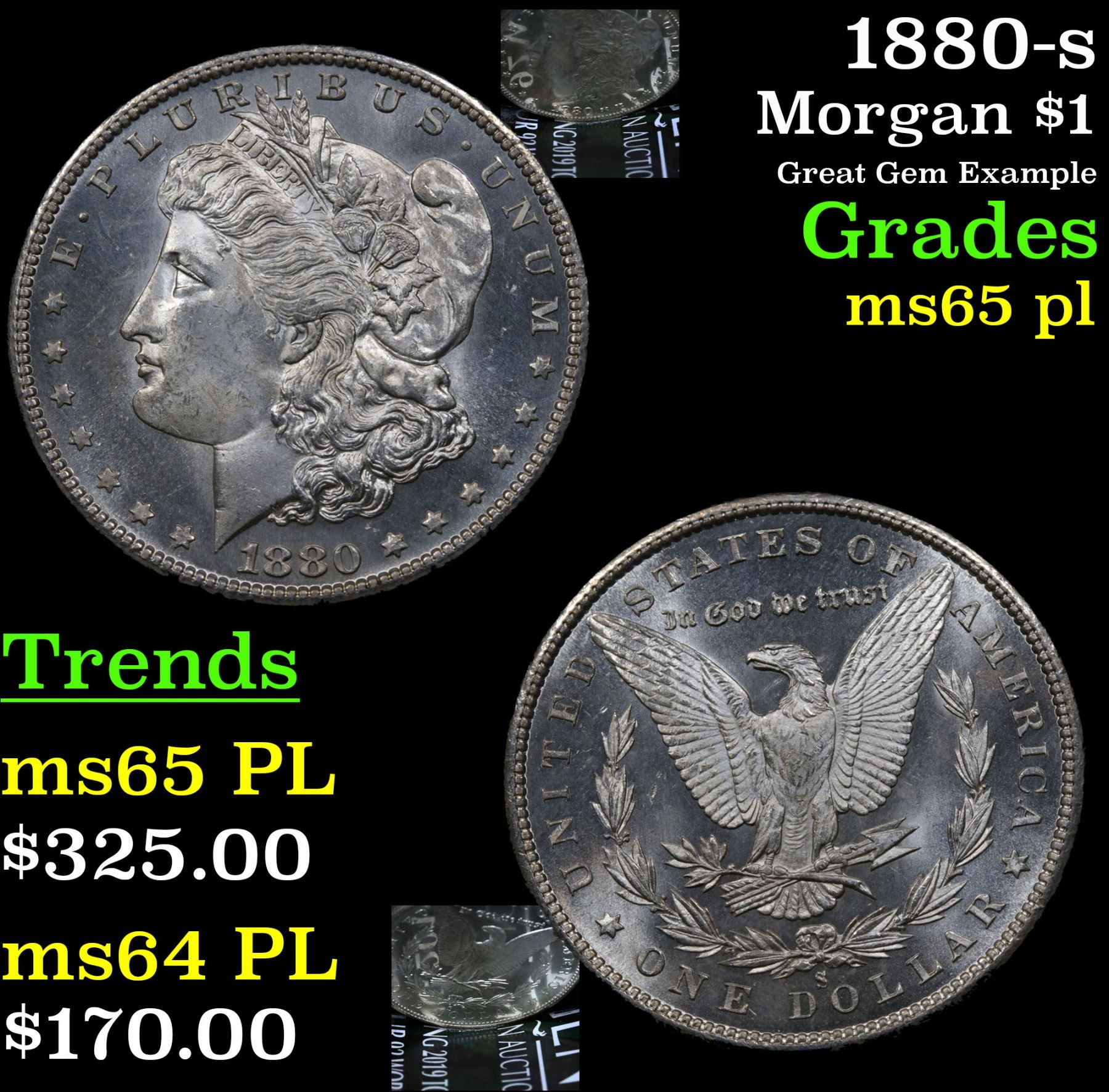 1880-s Morgan Dollar $1 Grades GEM Unc PL.