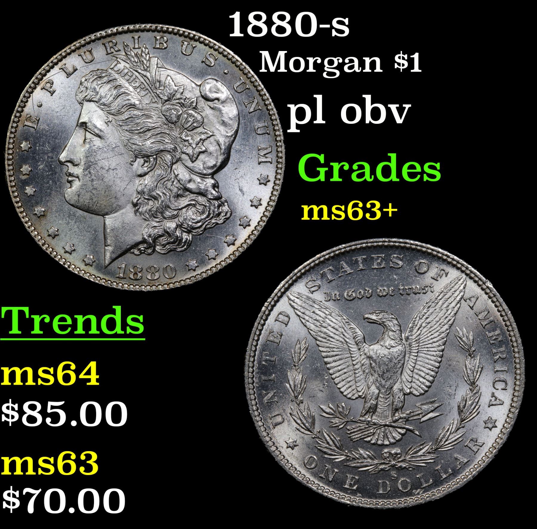 1880-s pl obv . Morgan Dollar $1 Grades Select+ Unc.