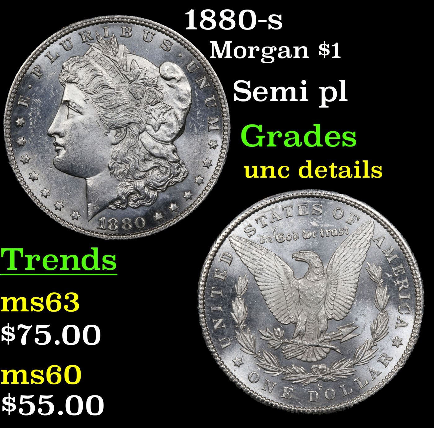 1880-s Morgan Dollar $1 Grades Unc Details.
