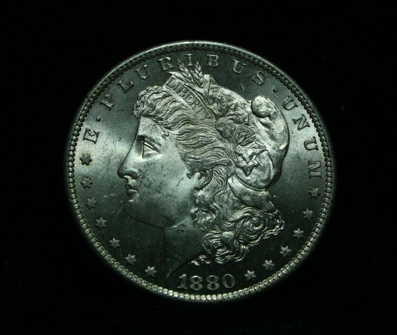 A stunning 1880-s with a spectacular cheek and virtually mark free fields. Blazing Luster, super coin. The Wholesale Greysheet lists ms65 at $212+. Estimated Value $225