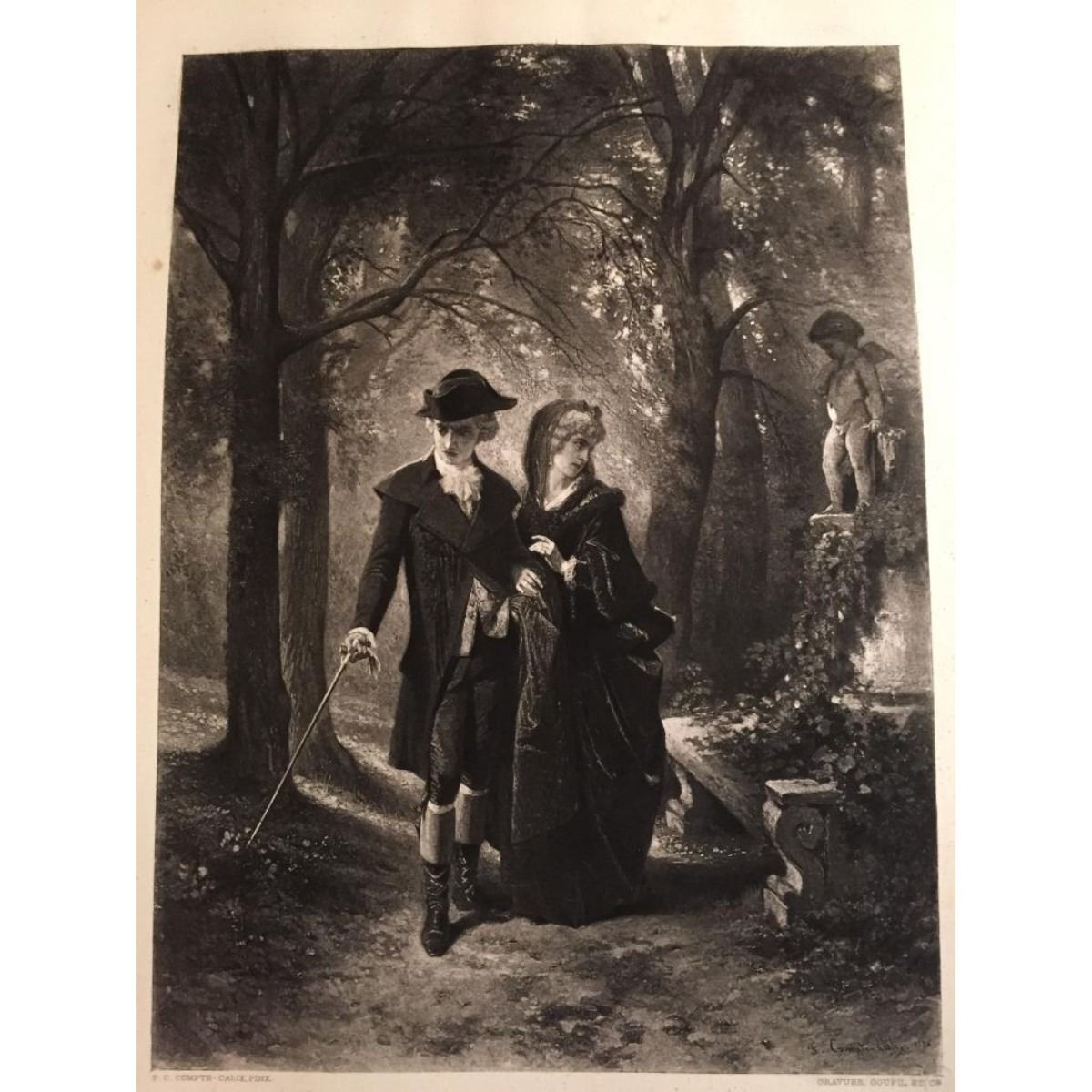 Original 1880's photogravure print from the original painting by F.C. Compte - Calix. From an Imperial limited editon of 1000, the Masterpieces of French Art. Engraved by Goupil & Co, Paris on heavy japon paper."Poor Love". Courtship scene. Comes with original descriptive divider page. 11" X 14".