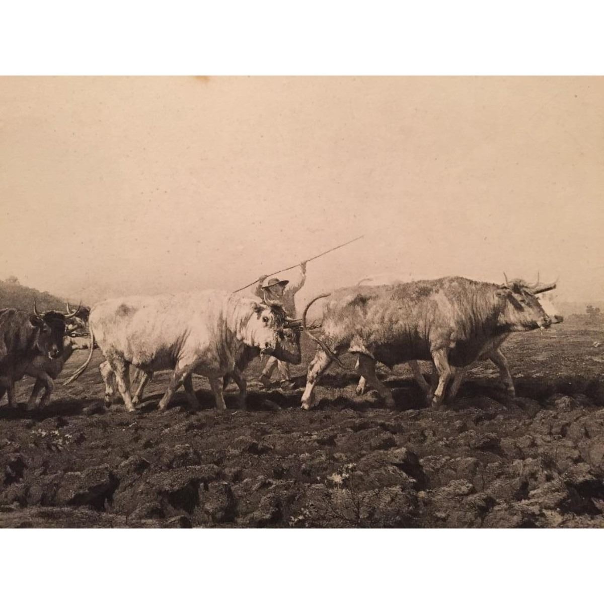 Original 1883 photogravure print entitled, "Plowing In Nivernais". From the original painting by Marie-Rosa Bonheur. From an imperial limited edition of 1000, the Masterpieces of French Art. Goupil & Co.