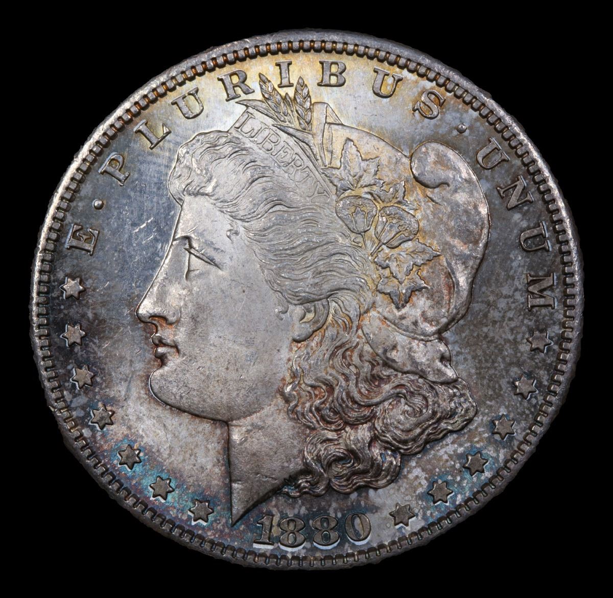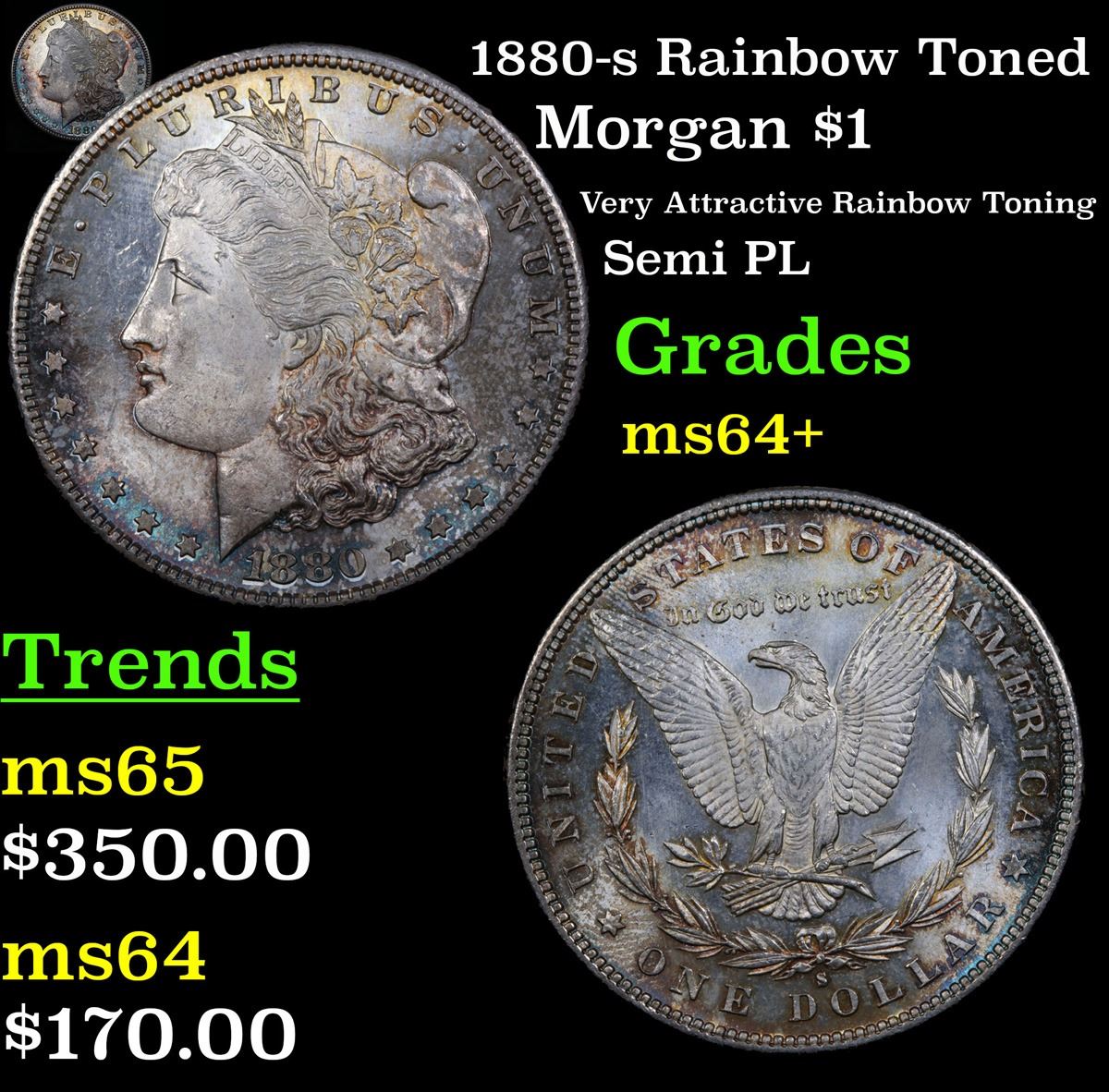 1880-s Rainbow Toned Morgan Dollar $1 Grades Choice+ Unc.