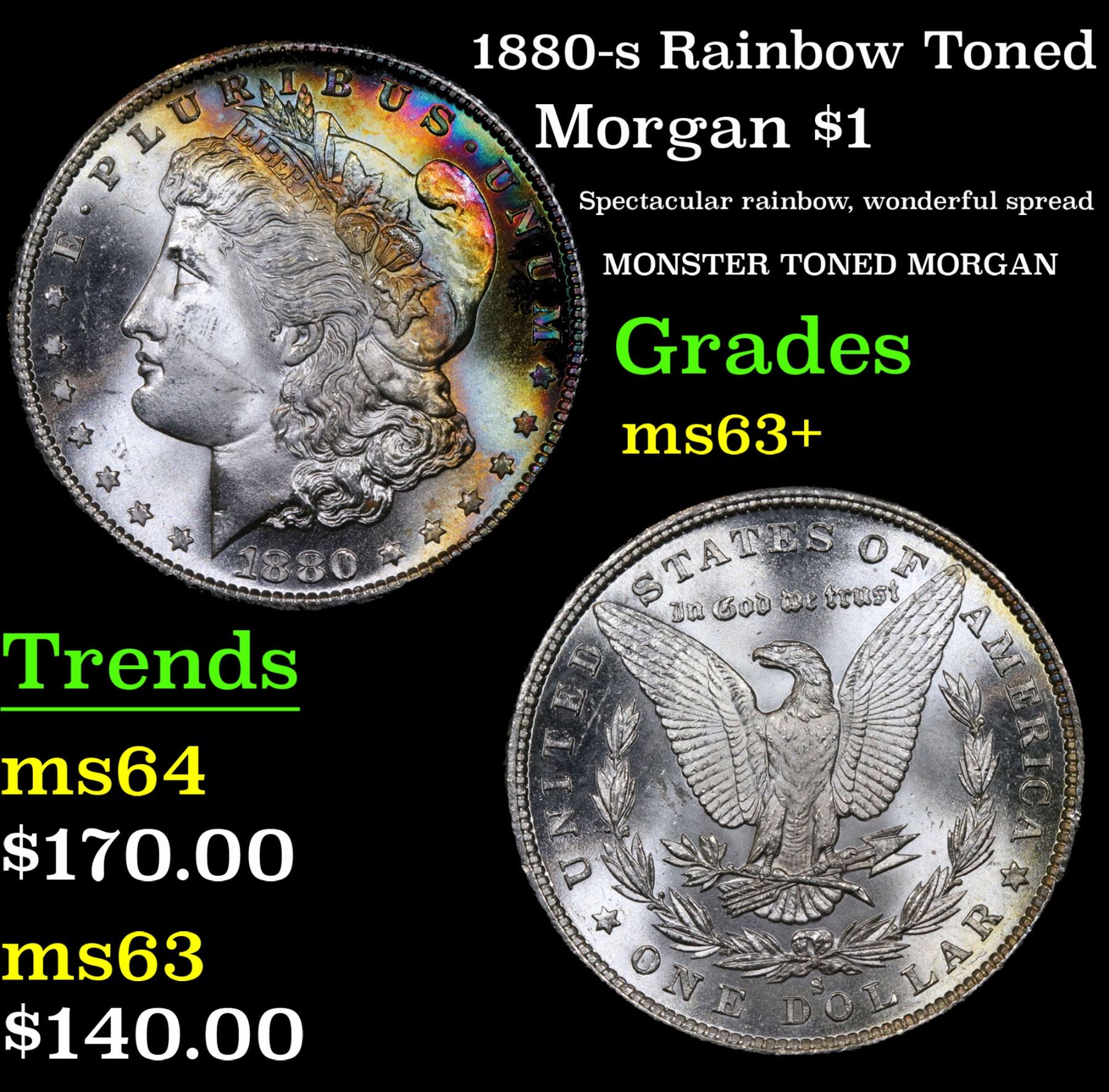 1880-s Rainbow Toned Spectacular rainbow, wonderful spread MONSTER TONED MORGAN Morgan Dollar $1 Grades Select+ Unc. A Corey's Pick, Bid to Win, Don't let it get Away, you might not find its equal Coin