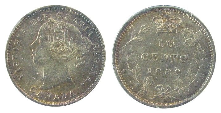 1880H 10¢ Obv 1 AU55. Attractive tones. (PBA).