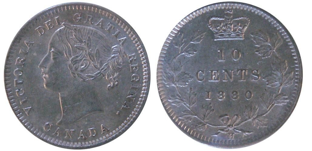 1880H 10¢ Obv 1 ICCS MS62. Very light golden tint with lots of lustre.