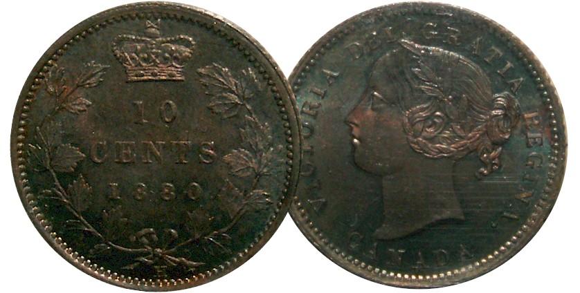 1880H 10¢ Obv 1, ICCS MS64.