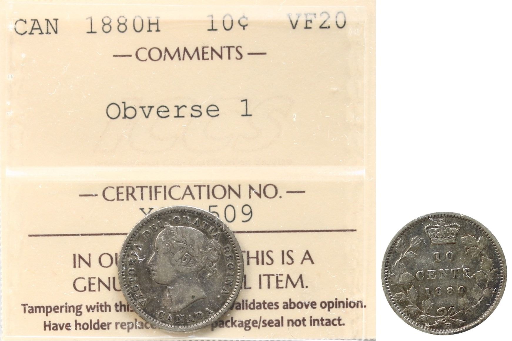 1880H 10¢ "Obv 1" ICCS Very Fine-20