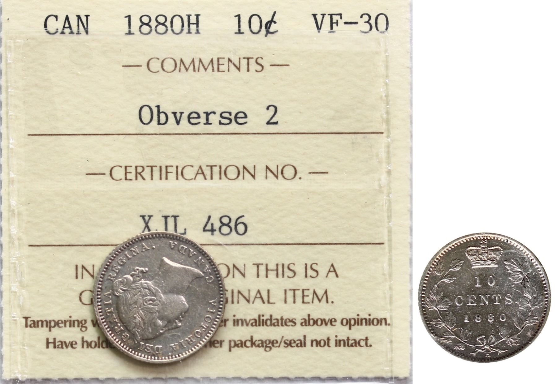 1880H 10¢ "Obv.2. ICCS Choice Very Fine-30