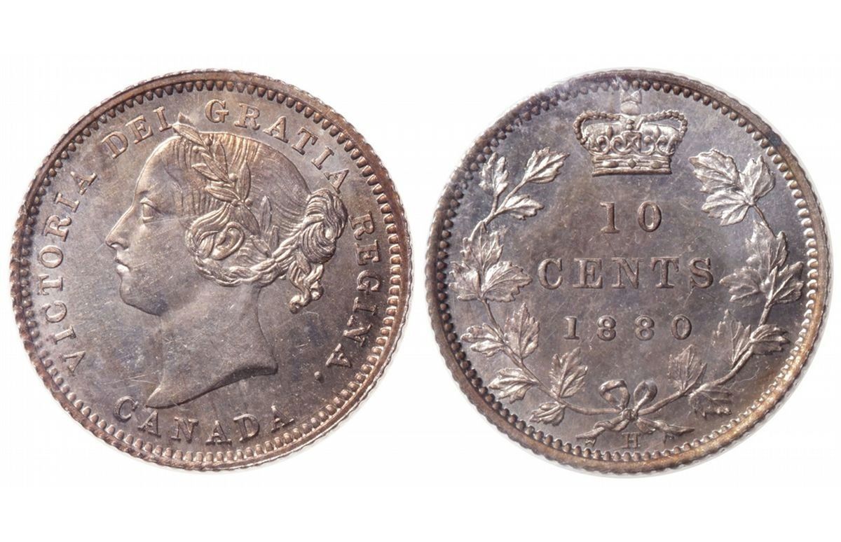 1880H 10¢ Obv 2 ICCS SP65. Great reflective surfaces with mirror like fields. A rare and seldom seen specimen example.