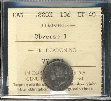 1880H 10¢ Obv ICCS EF40.