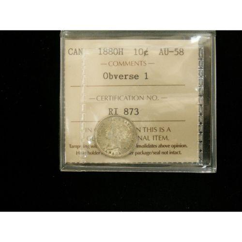 1880H 10¢ obv 1 ICCS AU58, Lots of lustre, real close to Mint State