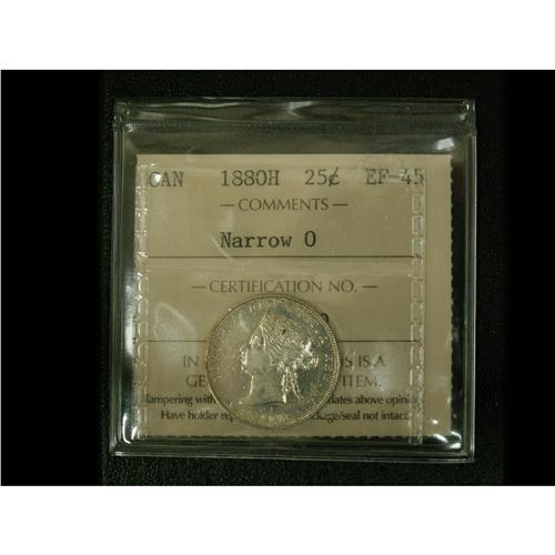 1880H 25¢ Nar 0 ICCS EF45, white and lustrous