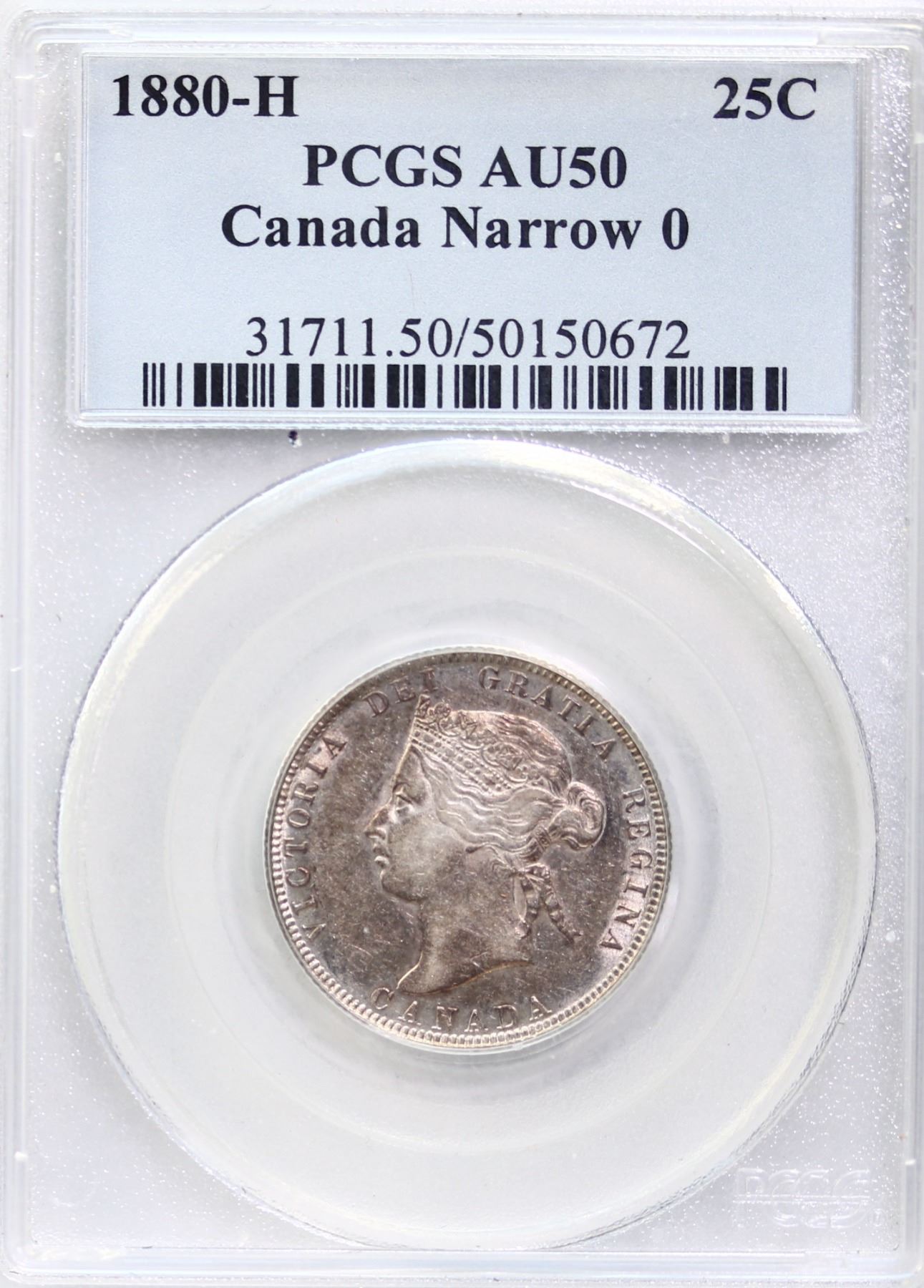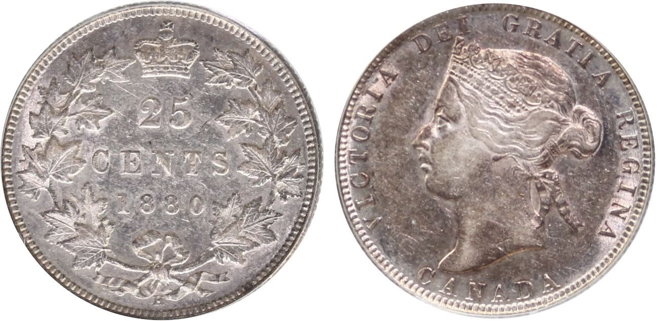 1880H 25¢ "Narrow O" 0 PCGS About Uncirculated-50. A nice example.