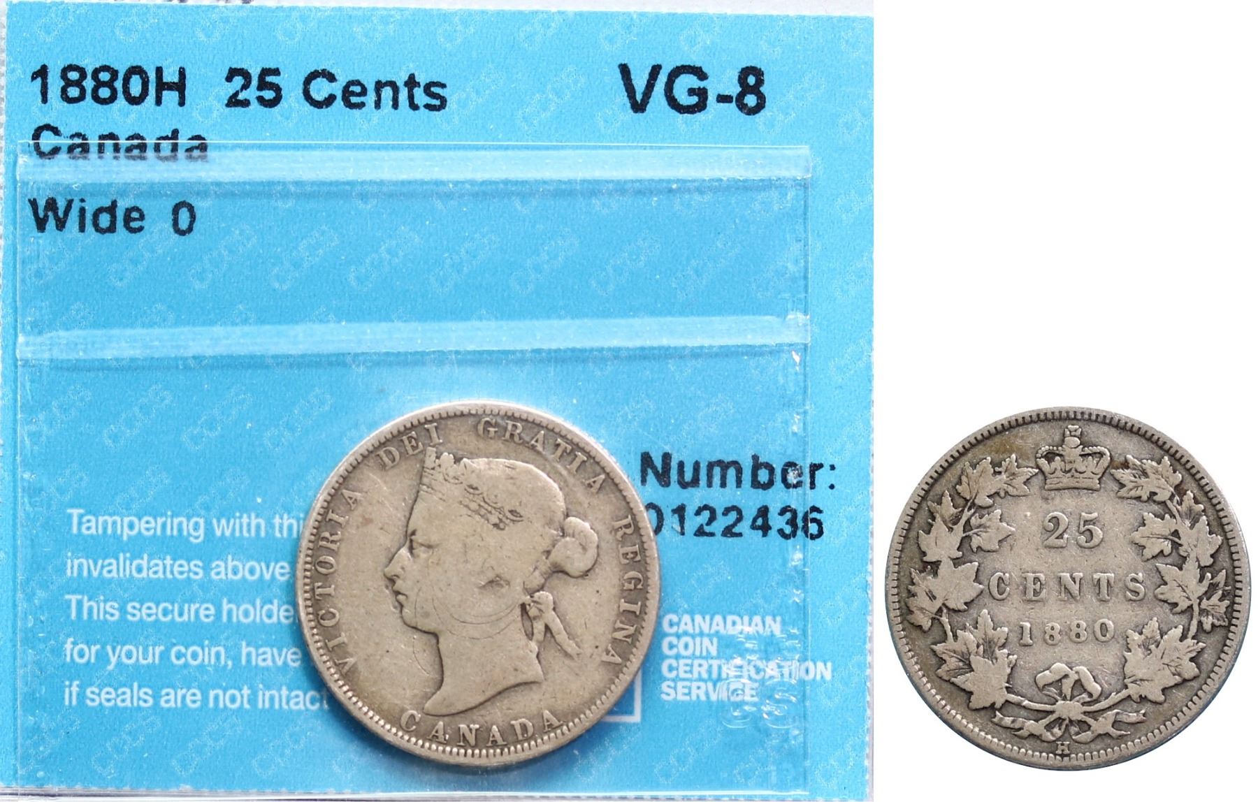 1880H 25¢ "Wide O" CCCS Very Good-8, Key date.