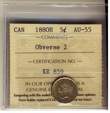 1880H 5¢ Obv 2 ICCS AU55, a decent example.
