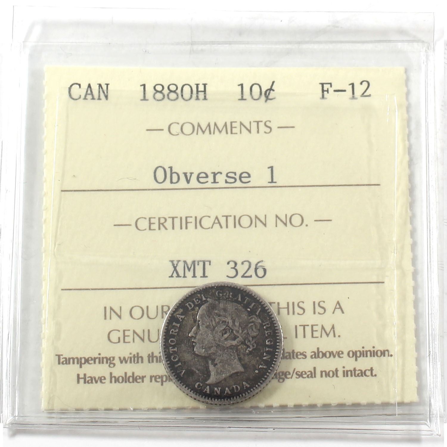 1880H Canada 10-cent Obverse 1 ICCS Certified F-12