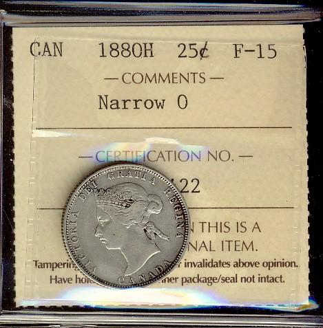 1880H Narrow 25¢ ICCS F15, a nice problem free example.