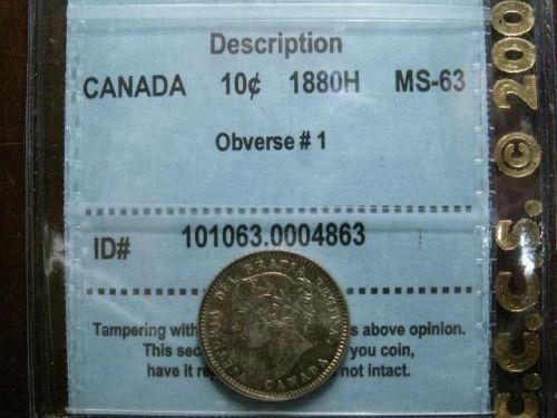 1880H Obv.1 10¢ CCCS MS63, multi-hued toning. A nice Victorian example.