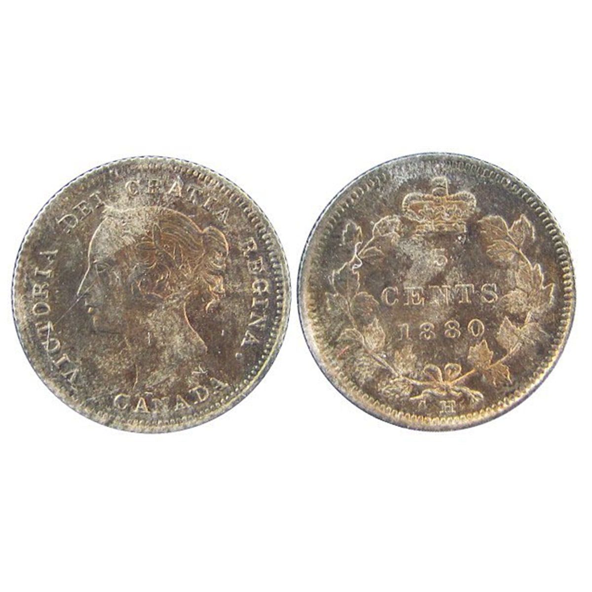 1880H Obv 3 5¢ ICCS MS65. Nice golden finish with full original lustre. A superb Gem example. Rarely offered in this condition.
