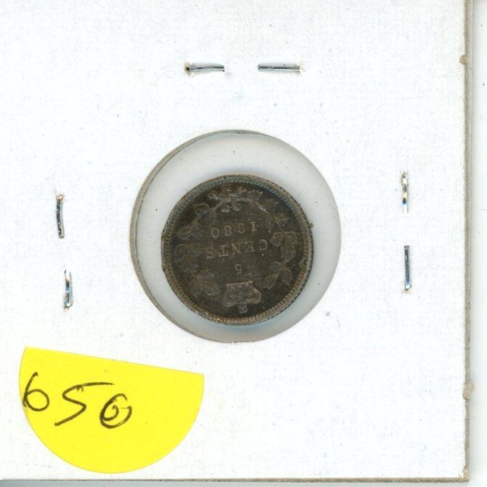 1880H Obverse 3 Canadian Victorian Silver 5 Cents. Heaton Mint. VF-20.