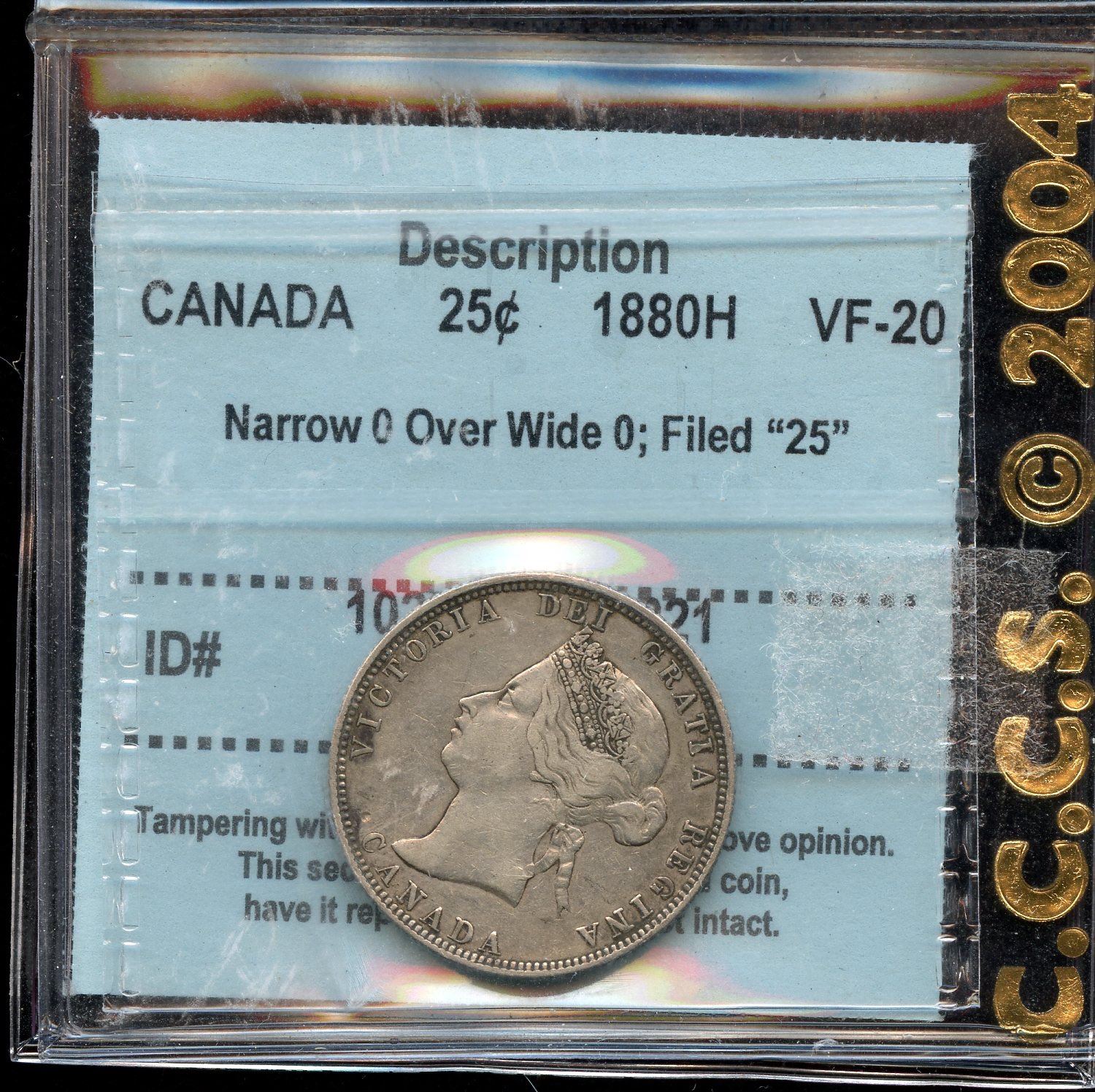 CCCS VF-20. Narrow O over Wide O; Filled "25".