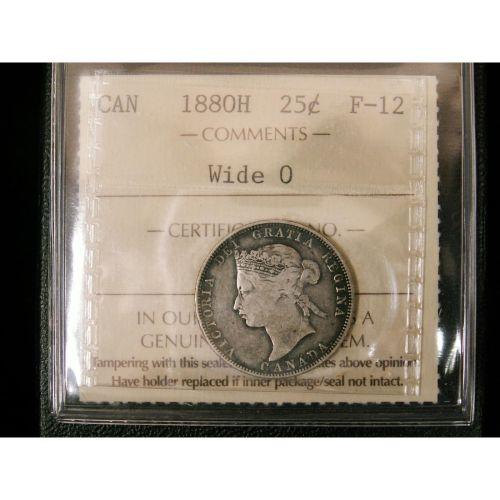 1880H " Wide O" 25¢ ICCS F12. Light toning. Key date.