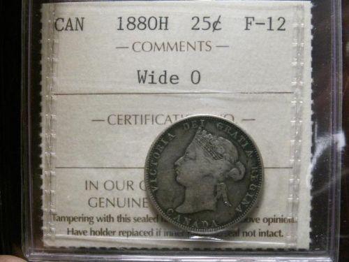 1880H " Wide O" 25¢ ICCS F12. Light toning. Key date.