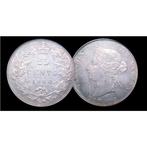 1880H "Wide O" 25¢ PCGS MS62. Light gold and russet tones over underlying luster. An extremely rare coin in mintstate condition. Don't miss this opportunity to acquire a true rarity! Missing in most advanced collection. Worth a premium bid!