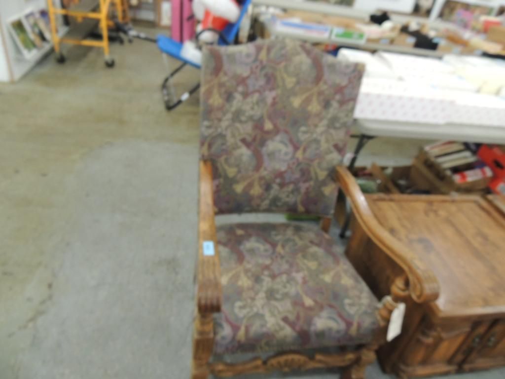 1880s FRENCH UPHOLSTERED CHAIR. ANTIQUE CHAIR. AS SHOWN. SEE PHOTO FOR MORE DETAILS.