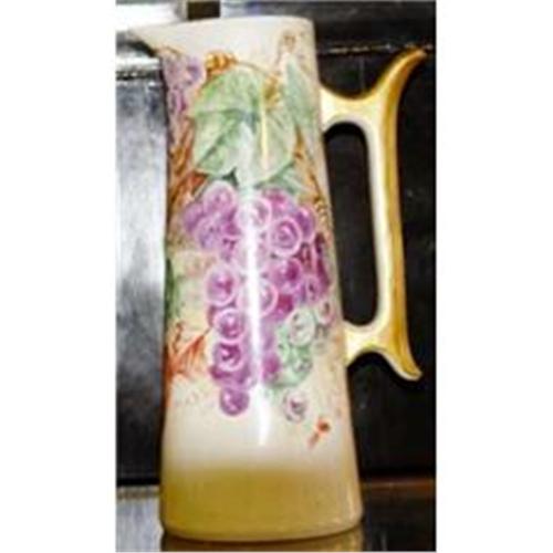 </font></strong>1880s Hand Painted grapes design Large Limoges pitcher with gold handle. Artist signed E.T.Bressster T&V Limoges France.