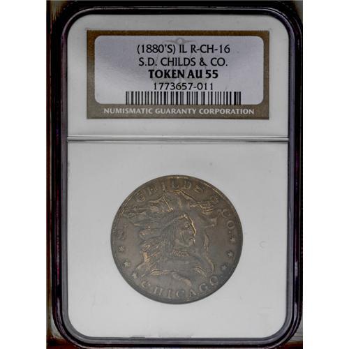 (1880s) S.D. Childs & Co., R-Ch-Il-16, AU55 NGC. Gilt b