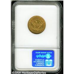 <B>1881/0 $5 AU53 NGC.</B></I> FS-005. The variety is in fact an 1881/1880, since traces of all four digits of the prior date are visible. Lustrous for the grade, this crisply struck example has a clean reverse and a few ticks beneath the chin.