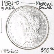 1881-0 MORGAN SILVER DOLLAR RED BOOK VALUE IS $55.00 *RARE MS-60 HIGH GRADE* SILVER DOLLAR CAME OUT OF SAFE!! ***Coin, Currency & All Items Listed in this auction - Grades, Conditions and Values are not Safe Deposit Coins LLC Responsibilty. Grades, Condition and Values are determined by Consigner(s) & Buyers ONLY***
